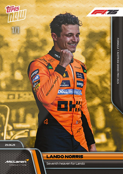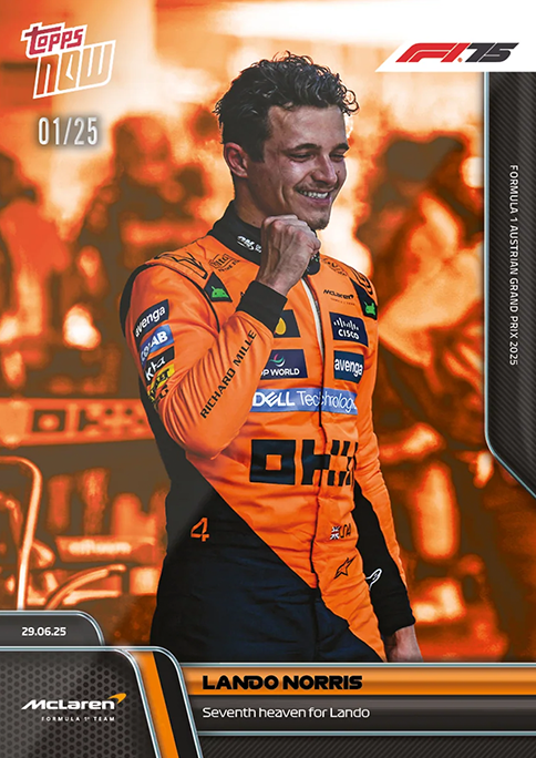 Lando Norris achieved his seventh Victory as a Formula 1® Driver as he wins the FORMULA 1 AUSTRIAN GRAND PRIX 2025.The British driver really was in seventh heaven ollowing an unbelievable weekend that saw him capitalise on a dominant Qualifying Display to secure his seventh Career Victory. Norris battled it out with teammate Oscar Piastri and ultimately ame out on top to close the gap on Piastri to 15 points in the driver's standings. He also became the first McLaren Formula 1® Team driver since David Coulthard in 2001 to win an F1® race in Austria.
