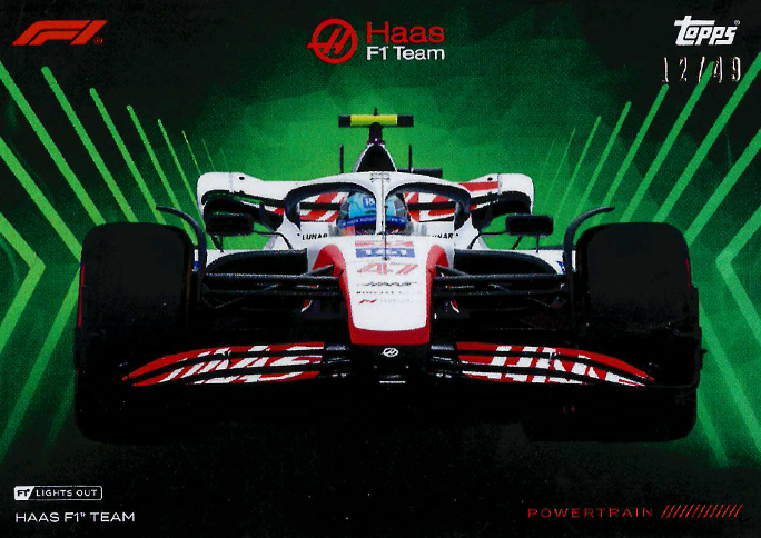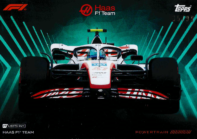 Limitiert: 12/49; 35/99 Anzahl: 2 Favorit: nein Bereich: Base card Typ: Powertrain Sprache / Version: Englisch / Europa Verkauft / getauscht: nein Team: Haas F1 Team(F1) Schätzpreis: 1.50 € Produkt: Formula 1 Lights Out 2022