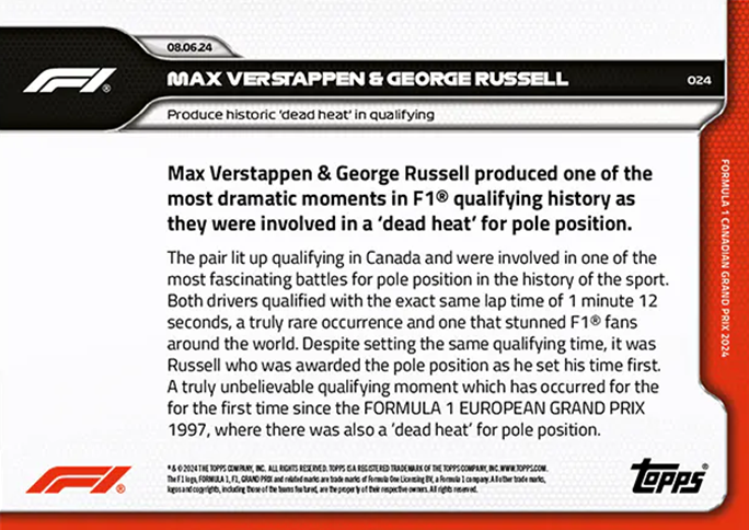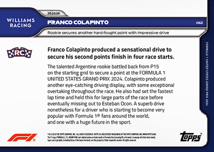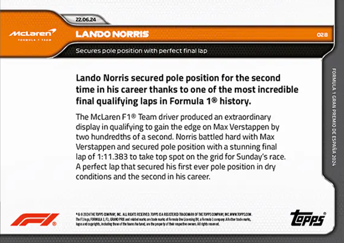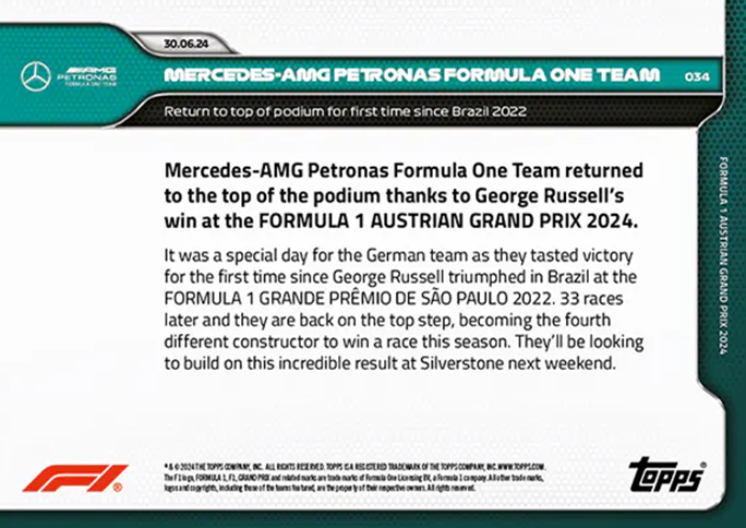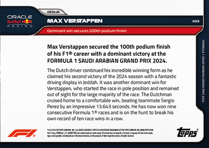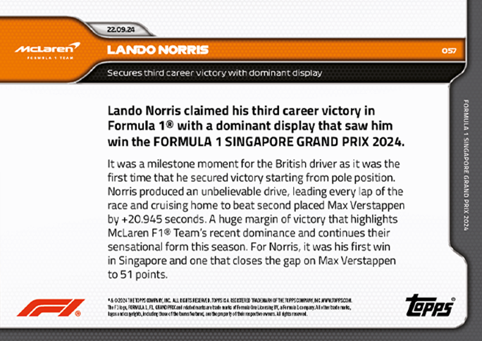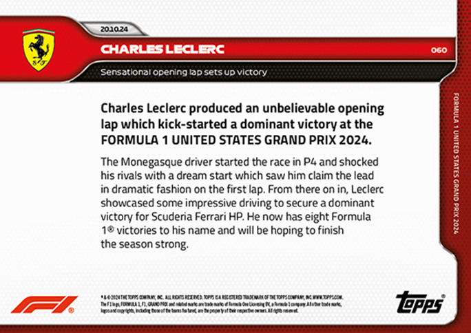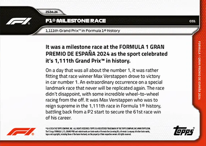 Formula 1 Racing 2024 Topps Now