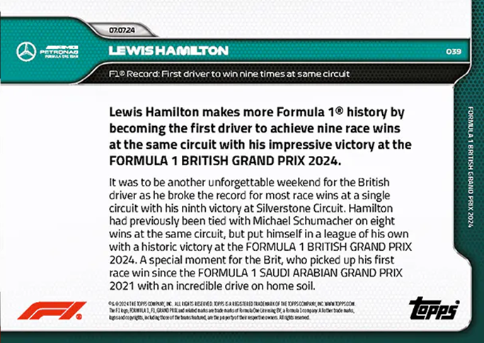 Lewis Hamilton: F1®: Record: First driver to win nine times at ame circuit