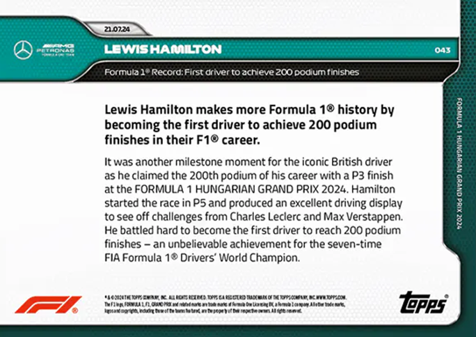 Lewis Hamilton: Formula 1® Record: First driver to archieve 200 podium finishes