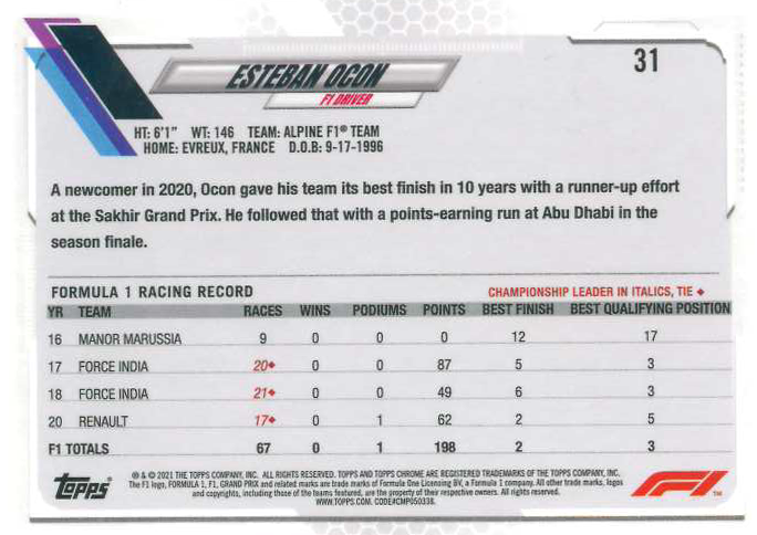 Besonderes Augenmerk der Sammler sollte in dieser Chrome Formula 1 Sapphire Edition den Short Print Base Variations gelten, da sie, aufgrund der ohnehin überschaubaren Auflage der Sapphire Edition, zu den seltensten Cards gehören, die zur Formel Saison 2021 existieren.
