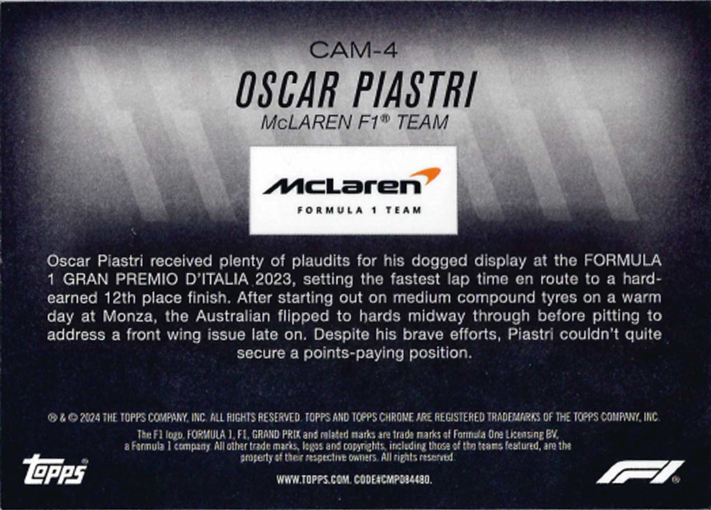 The F1 logo, FORMULA 1, F1, GRAND PRIX and related marks are trade marks of Formula One Licensing BV, a Formula 1 company. All other trade marks, logos and copyrights, including those of the teams featured, are the property of their respective owners. All rights reserved.