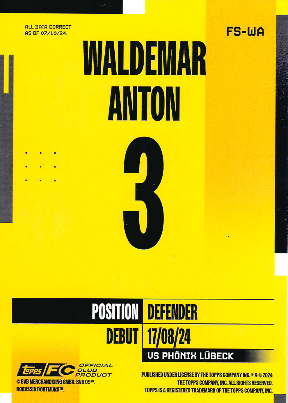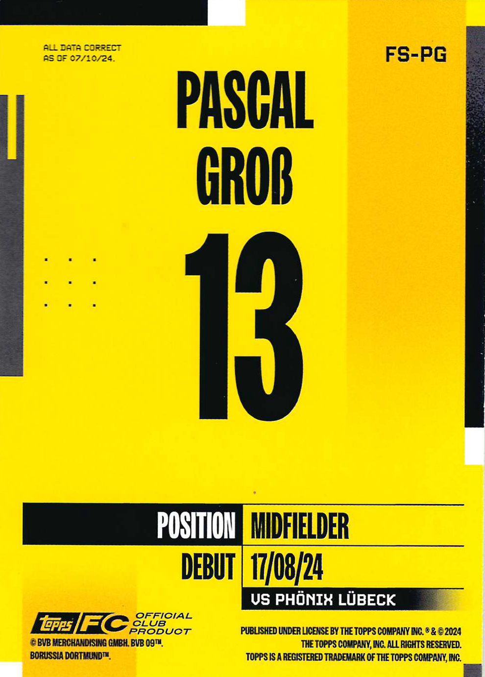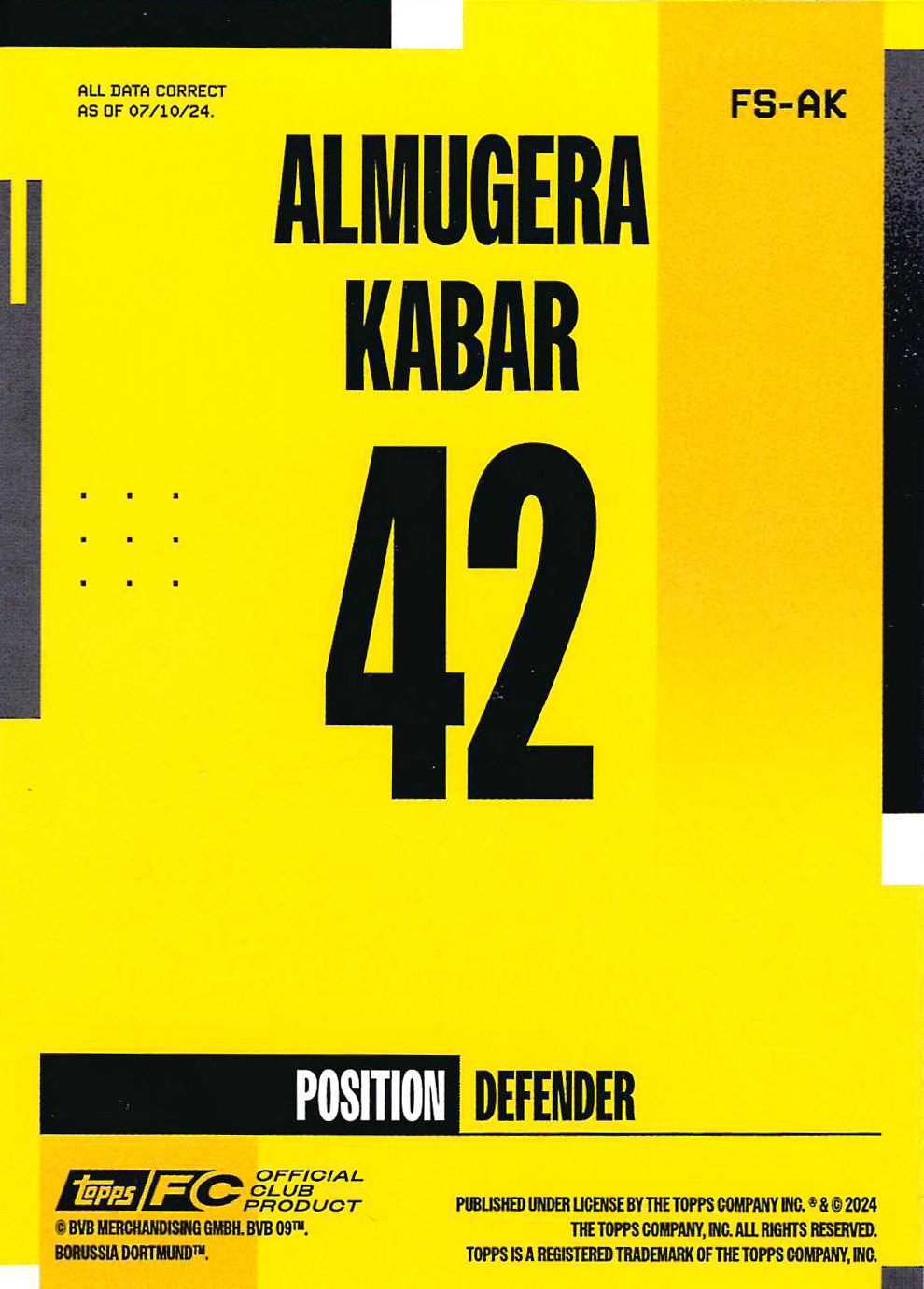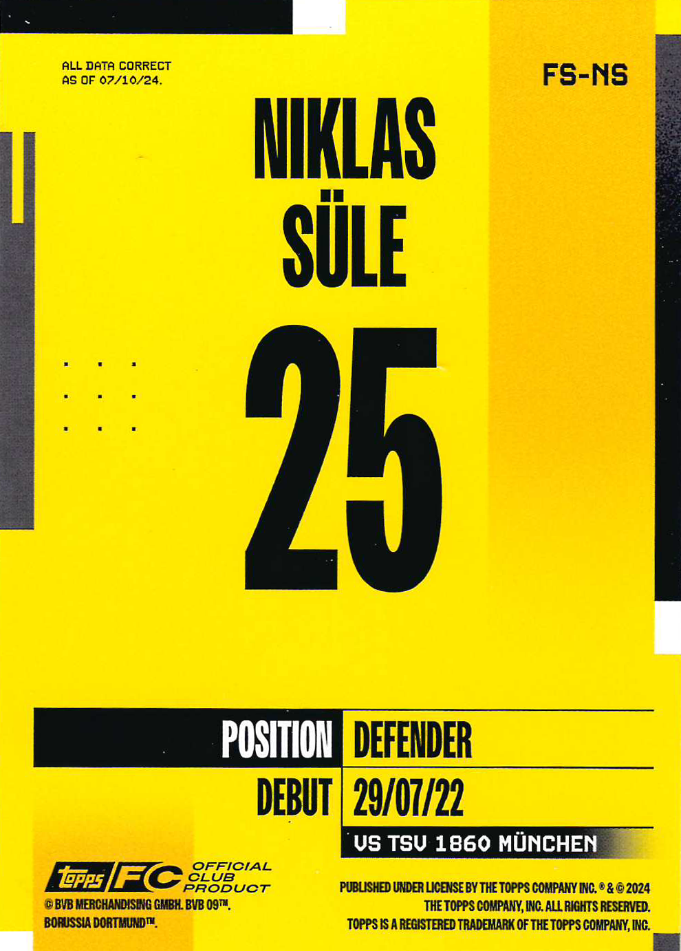 Borussia Dortmund 2024-25 Official Team Set Soccer Cards