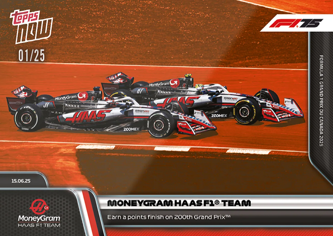 MoneyGram Haas F1® Team celebrated their 200th Formula 1® Grand Prix™ at the FORMULA 1 GRAND PRIX DU CANADA 2025.The American Team marked the Special Milestone race with points finish thanks to a P9 drive from Esteban Ocon. It was a significant Moment as Ocon's P9 finish was MoneyGram Haas F1® Team's highest ever finish in Canada. Oliver Bearman also produced a solid drive, ighting back from a P13 start to finish just outside the Points in P11. An encouraging performance from both Drivers n what was a significant landmark race for the team.