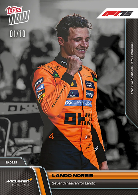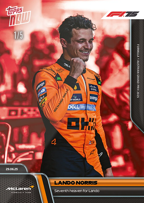 Lando Norris achieved his seventh Victory as a Formula 1® Driver as he wins the FORMULA 1 AUSTRIAN GRAND PRIX 2025.The British driver really was in seventh heaven ollowing an unbelievable weekend that saw him capitalise on a dominant Qualifying Display to secure his seventh Career Victory. Norris battled it out with teammate Oscar Piastri and ultimately ame out on top to close the gap on Piastri to 15 points in the driver's standings. He also became the first McLaren Formula 1® Team driver since David Coulthard in 2001 to win an F1® race in Austria.