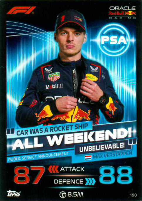 Club 100 Karten, darunter die unschlagbare 101 Karte von Doppelweltmeister Max Verstappen.