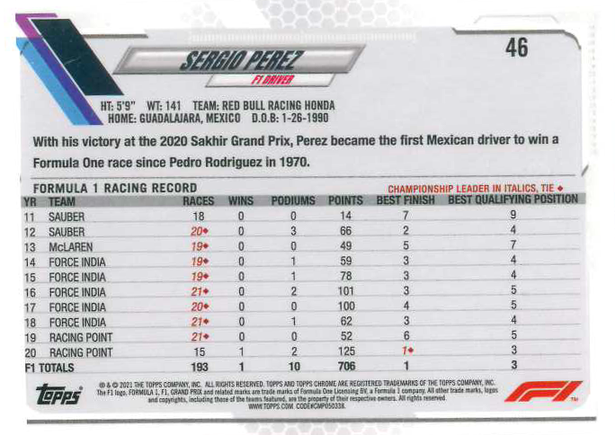 Besonderes Augenmerk der Sammler sollte in dieser Chrome Formula 1 Sapphire Edition den Short Print Base Variations gelten, da sie, aufgrund der ohnehin überschaubaren Auflage der Sapphire Edition, zu den seltensten Cards gehören, die zur Formel Saison 2021 existieren.