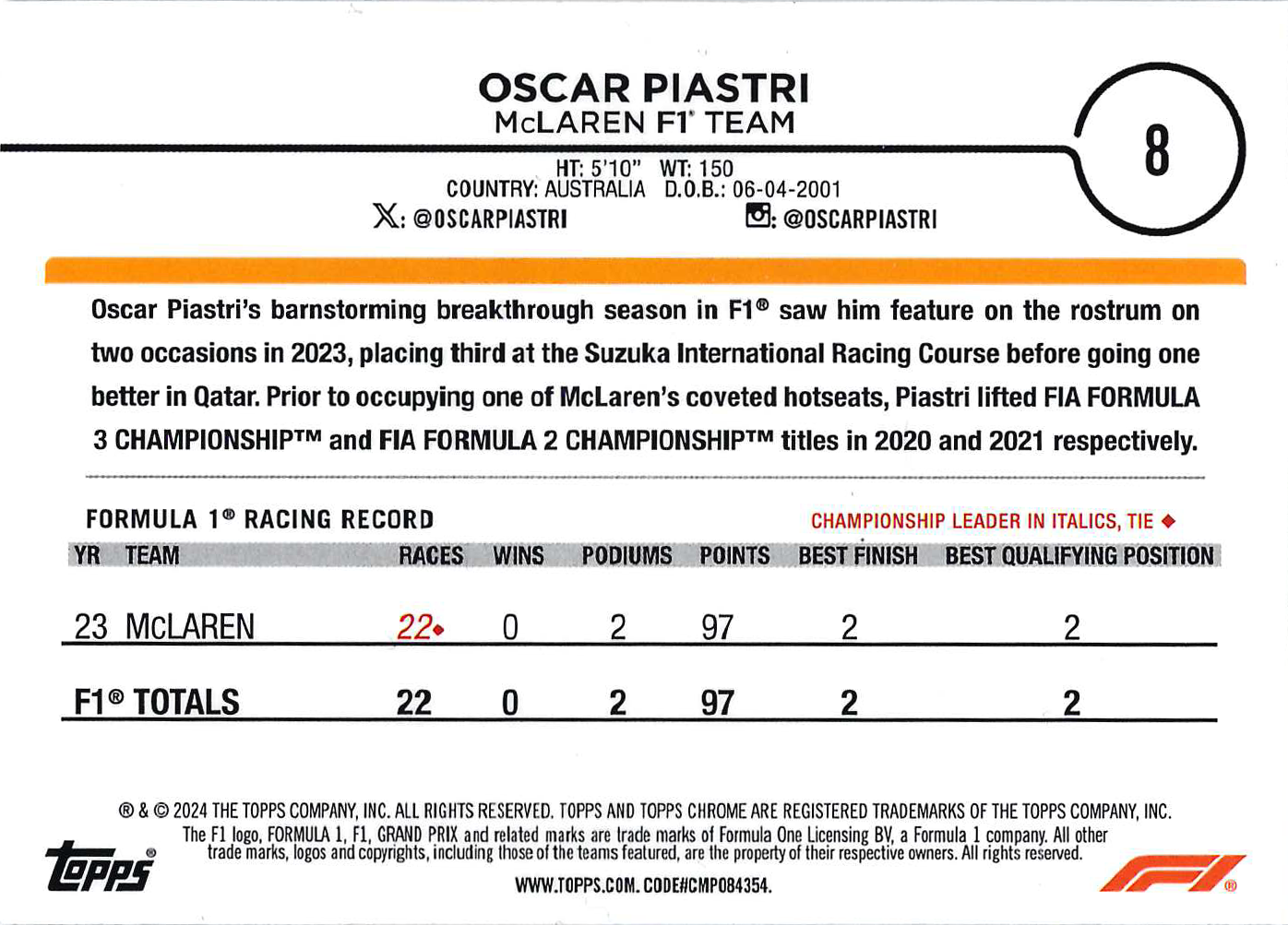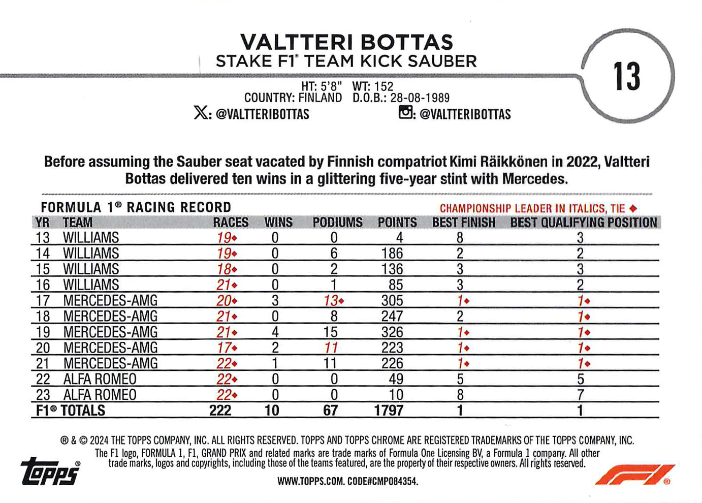 The F1 logo, FORMULA 1, F1, GRAND PRIX and related marks are trade marks of Formula One Licensing BV, a Formula 1 company. All other trade marks, logos and copyrights, including those of the teams featured, are the property of their respective owners. All rights reserved.