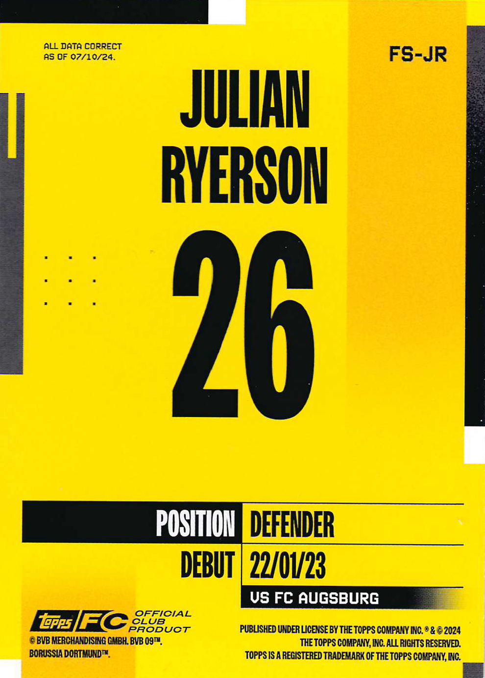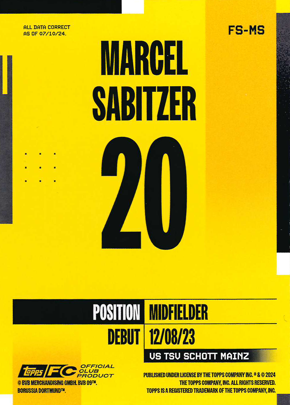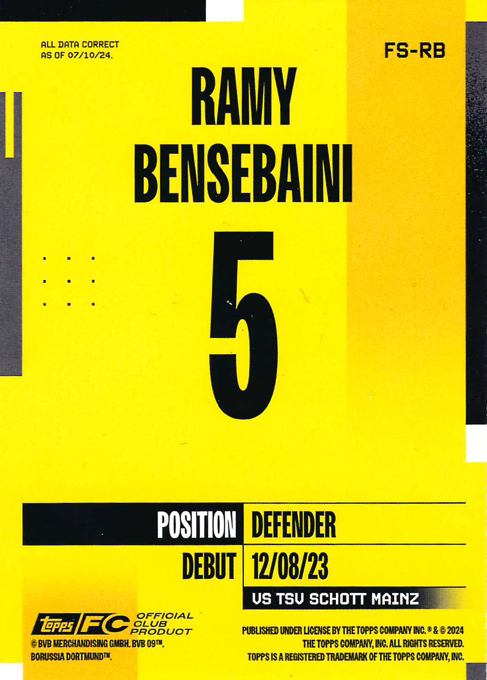Borussia Dortmund 2024-25 Official Team Set Soccer Cards
